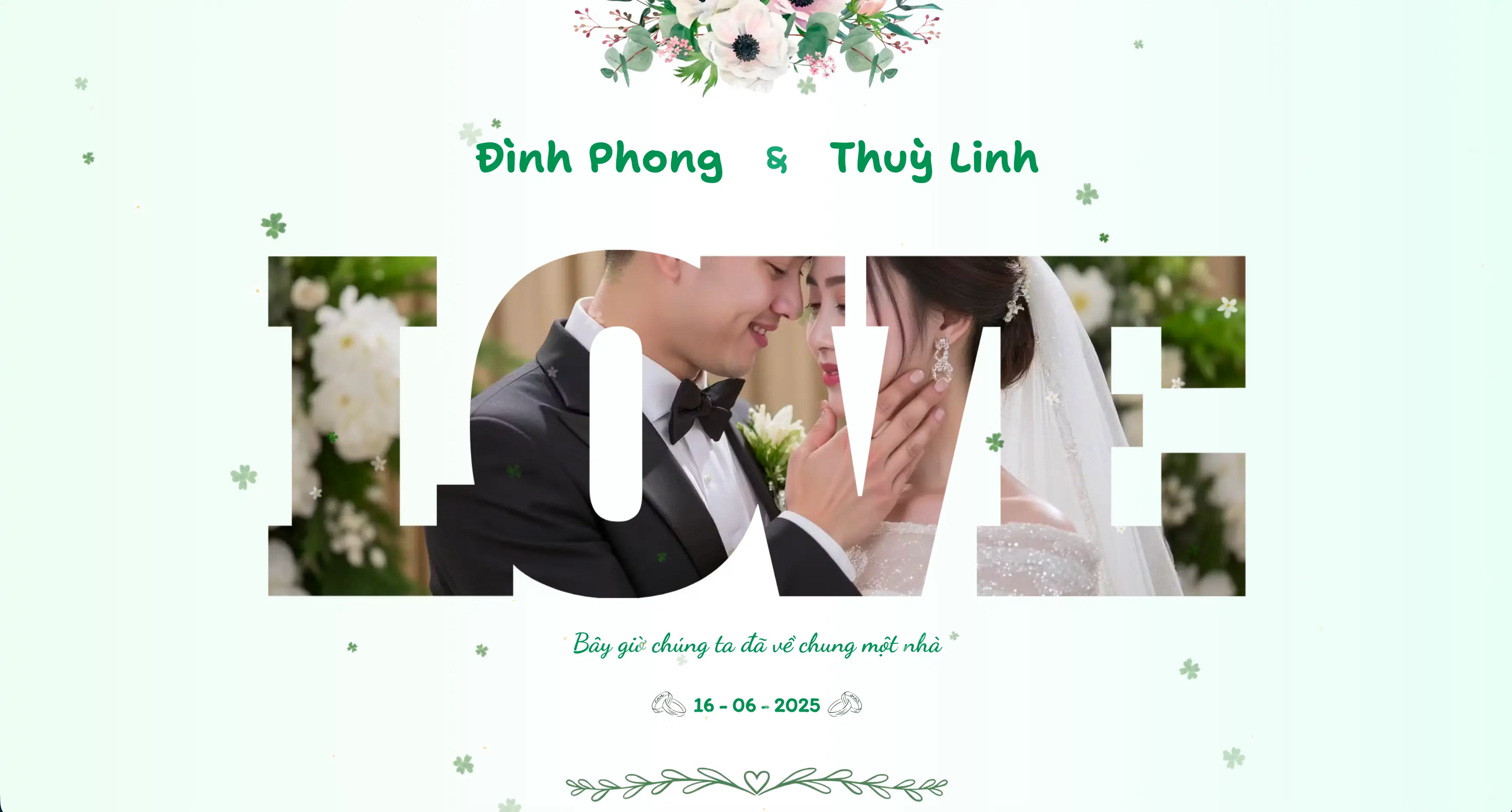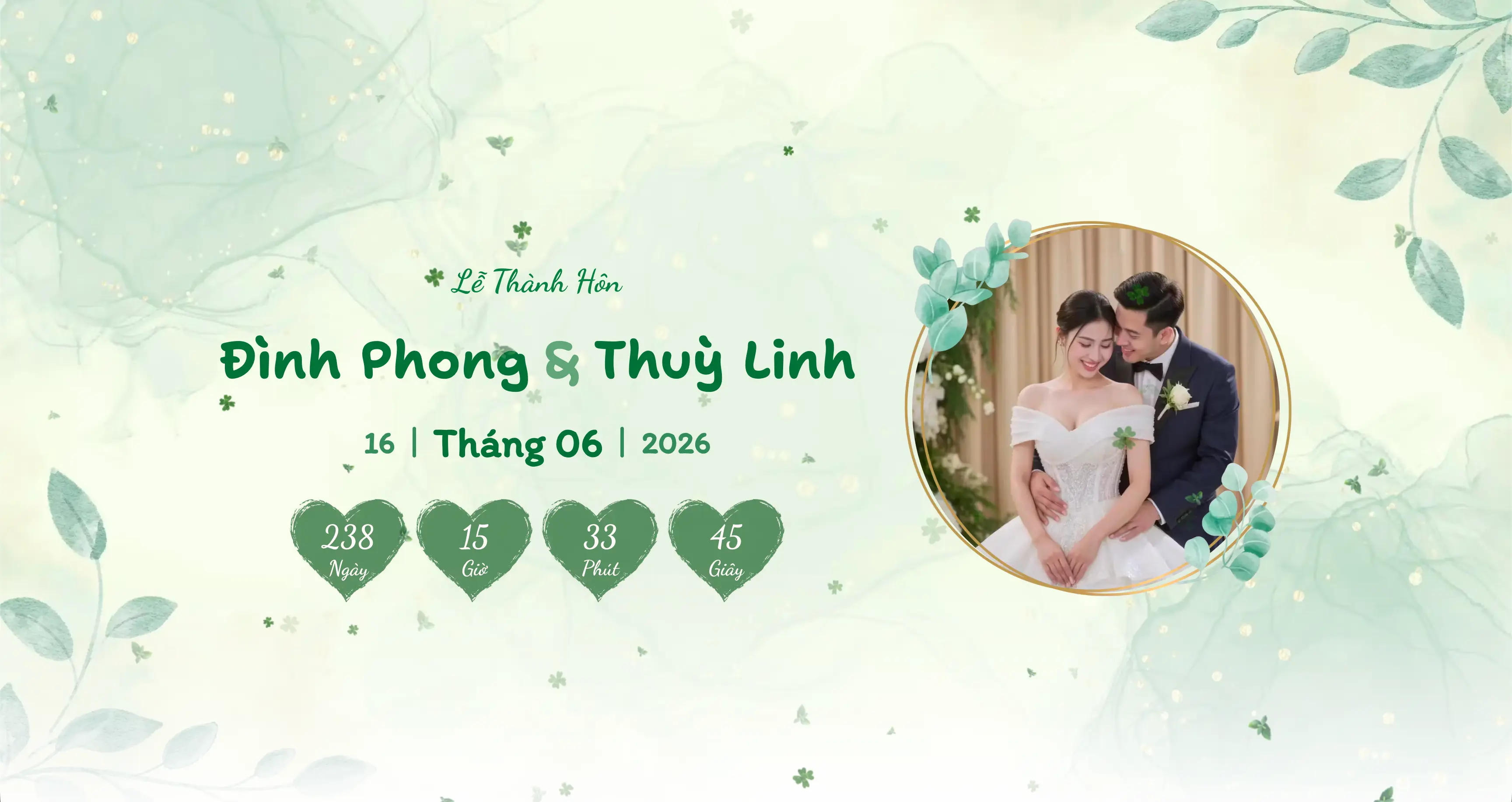 Mang sắc xanh tươi mới, như lời chúc phúc nhẹ nhàng gửi đến cặp đôi hạnh phúc.