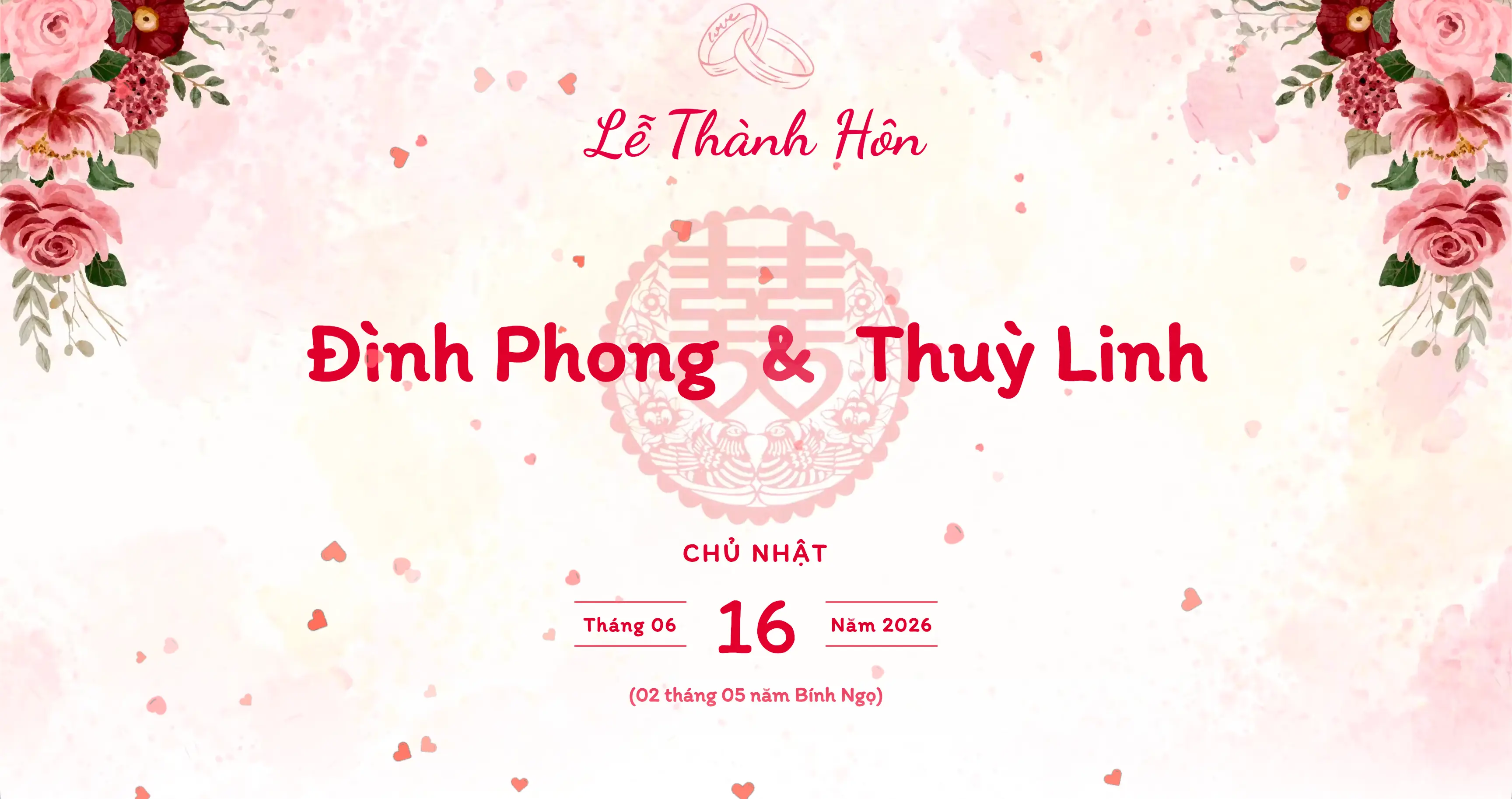 Thiệp đỏ truyền thống tượng trưng cho hỷ sự, may mắn và tình yêu nồng ấm, phù hợp cho lễ cưới trang trọng.